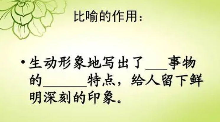 总结:比喻作为一种修辞手法,在沟通交流中发挥着重要的作用。它可以增强理解能力,传达情感,使形象更生动,加强记忆效果,并促进思维的创新。因此,善于运用比喻的人在表达自己的观点和情感上更具有说服力,并能更好地与他人沟通和理解。无论是文学作品还是日常交流,比喻都是一种强大的工具,能够使语言更富有想象力、感染力和说服力。