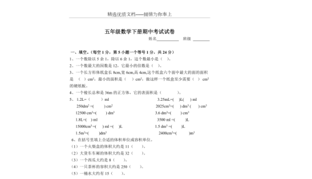 总结:五年级下数学期中考试是对学生学习成绩和进步的一次重要检验,学生们需要做好充分准备,掌握考试技巧,保持积极心态,充分发挥自己的潜力和能力,取得优异的成绩。希望全体同学能够在期中考试中取得令人满意的成绩,为自己的学习之路打下坚实的基础。