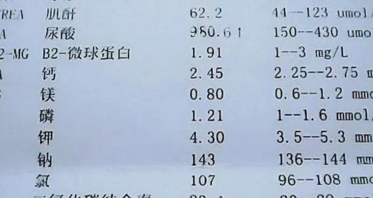 尿酸是由嘌呤代谢形成的,其高水平可能导致痛风的发生。痛风是一种关节炎,通常表现为突然的关节疼痛和肿胀,尤其是在大脚趾关节附近。如果尿酸水平持续升高,尿酸晶体将堆积在关节周围,导致炎症反应,进一步损害关节组织。高尿酸还与心血管疾病、肾脏疾病和代谢综合征等健康问题有关。