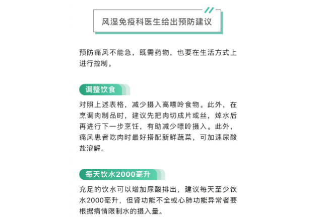 - 补充足够的水分:喝足够的水可以促进尿液生成,有助于尿酸的排泄,建议每天饮水量在2000ml以上。