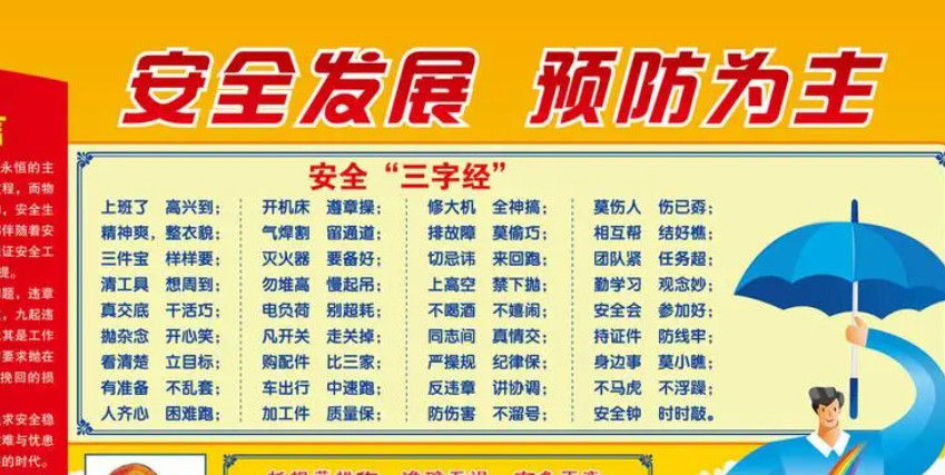 劳动安全是每个从事劳动工作的人都应该重视的问题。在工作中,我们需要时刻保持警惕,遵守相关的劳动安全规定,做到“有安全意识,注意安全防范”。一些劳动安全口号标语有:“安全第一,事故零”,“一碗水端平,安全第一”的口号标语可以时刻提醒我们重视劳动安全。