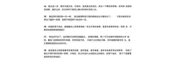 结语:毕业,代表着结束,更是新的开始。在这个特殊的时刻,我要感谢曾经的学校和老师,感谢所有支持我的人。愿我们在各自的道路上,勇敢前行,追寻梦想,不负青春。愿我们在人生的每个阶段都能遇到美好的事物,成长为更好的自己。生活不易,但我们仍然要坚持,因为只有坚持才能收获。愿我们都能不负韶华,不负风光,迎接未来的每一天。毕业,是离别,更是遇见。让我们怀着感恩的心,迎接未来的每一个挑战,收获每一份喜悦。愿未来的日子里,我们继续努力向前,扬帆起航。愿我们永远热爱生活,永远年轻,永远向前。愿我们都能勇敢前行,不畏风雨,不畏艰难。愿我们都能成为自己想要成为的样子,实现自己的梦想,让人生更加精彩。愿我们都能拥有一份热爱和一份坚持,在人生的路上永远不忘初心。愿我们都能在未来的日子里笑对生活,不忘初心,继续向前。愿我们都能成为更好的自己,不负韶华,不负青春。愿我们都能拥有勇气和希望,迎接人生的每一个挑战和机会。毕业,是一个告别,更是一个新的开始。让我们怀着感恩的心,继续前行,追求更加美好的未来。愿我们都能不负春光,不负时光,迎接人生的每一天。愿我们永远坚持不懈,永远不忘初心,向着梦想不懈地努力。愿我们都能拥有明亮的未来,喜悦的生活。愿我们永远年轻,勇敢向前,披荆斩棘,不负韶华。愿我们永远怀揣梦想,坚定前行,不忘初心,成为自己想要成为的样子。李白说:“青山不改,绿水长流”,让我们愿意在人生的道路上,青春长存,勇往直前,永不停歇。