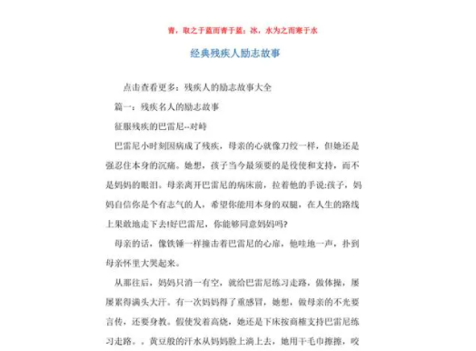 残疾并不妨碍一个人积极向上、勇往直前。下面就让我们来了解一则残疾人励志故事。