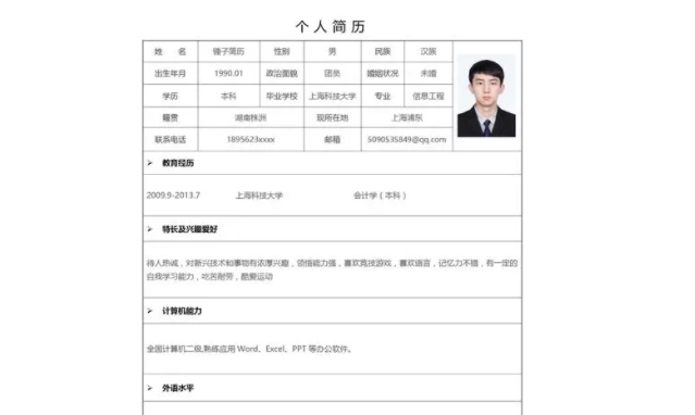 - 本科毕业于某某大学会计学专业,学习期间成绩优异,获得过多项奖学金和荣誉称号。