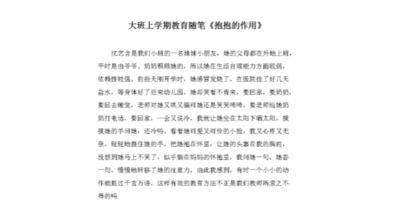 2. 大班教育能够让学生更好地适应社会。在社会中,我们往往需要和各种各样的人打交道,而在大班环境中,我们也能够结识各种不同性格的同学,从而培养学生的社交能力和适应能力。