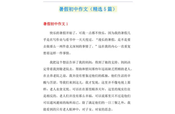 初中生的暑假是一个充满无限可能的假期,有些同学可能会到出去旅行,有些同学可能会到去补习班加强学习,还有一些同学可能会选择在家里安安静静地度过。不管选择什么样的方式度过暑假,都能让我们在短暂的假期里得到充分的放松和充实。