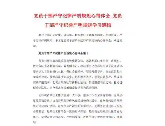 结语:全面从严治党是党在长期执政过程中出来的重大政治经验和实践成果,是推动党风廉政建设、纪律教育工作不断向前发展的必然要求。我们每一名党员干部都要深刻领会全面从严治党的要求,严守党纪国法,坚决贯彻落实党中央的决策部署,以实际行动维护党的威信,增强党员干部的勇气和责任感,不断提高全面从严治党的效果,为建设社会主义现代化国家贡献自己的力量。