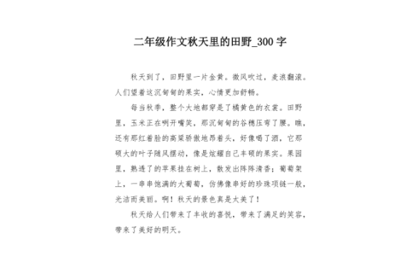 秋天是一个收获的季节,田野上金黄的稻谷在微风中轻轻摇曳,远处还传来农民欢快的歌声。让我们一起走进这片金色的田野,感受秋天的美好。