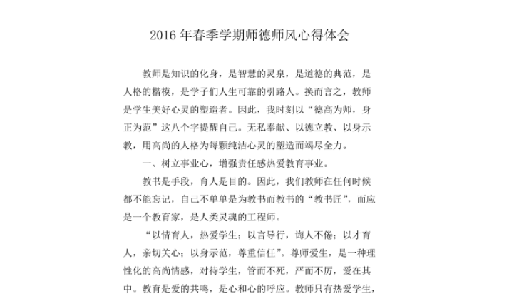 在成为一名教师之前,我一直以为教师的职责就是传授知识,培养学生的能力。然而随着时间的推移和实践的经验,我逐渐体会到师风师德的重要性,意识到作为一名老师,自身的修养和道德品质同样至关重要。以下是我对师风师德的一些体会和感悟。