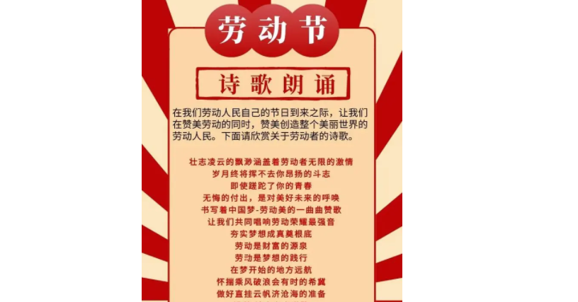 五一劳动节是全世界劳动人民共同拥有的节日,它让我们铭记劳动者的辛勤付出,感恩劳动者对社会的贡献。在这个特殊的日子里,我们不妨用诗歌来表达对劳动者的敬意和祝福。