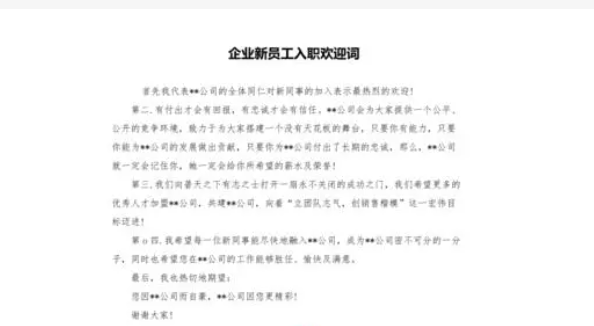 欢迎新员工的到来是企业发展的一个重要环节,新员工的融入与适应将直接影响企业的发展和氛围。以下是一篇关于新员工欢迎词的文章,希望能够帮助企业更好地迎接新员工。