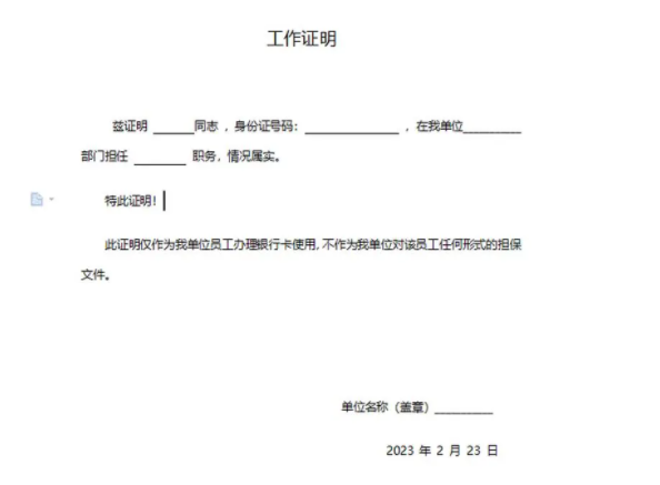 银行开卡工作证明需要由单位的人事部门或者财务部门出具,确保证明的真实性和可靠性。如果银行怀疑证明的真实性,有可能要求客户提供进一步的证明材料。