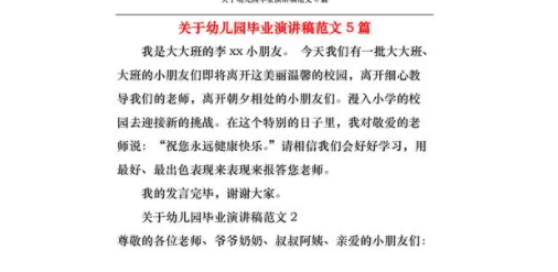 1.回首过去,我们在幼儿园度过了快乐而充实的时光。在这段时间里,我们学习了很多知识,认识了很多新的朋友,也锻炼了自己的大胆和勇敢。在老师的呵护下,我们茁壮成长,变得更加独立自信。