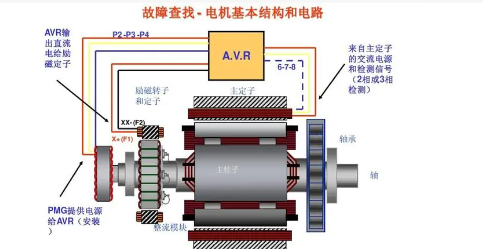发电机是一种将机械能转化为电能的设备,其基本构造主要由转子、定子以及外部供电系统三部分组成。