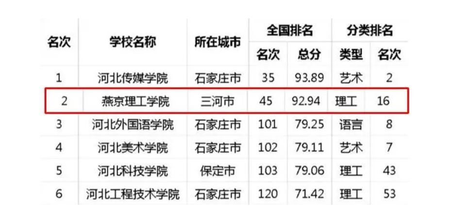 一:燕京理工学院的排名现状