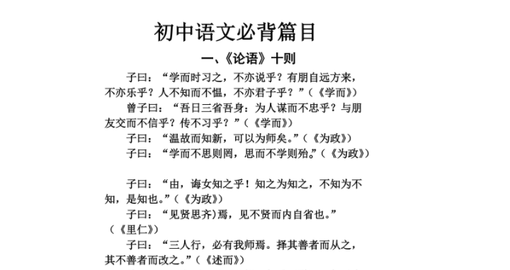 必背篇目都是中国传统文化的精华,承载着深厚的历史和文化信息。通过学习这些篇目,学生不仅了解了作品背后的历史背景、作者的生平,还能深刻体会到中华民族的价值观和审美情趣。例如,《论语》中的“己所不欲,勿施于人”这一简洁明了的道理,不仅是中华传统伦理的重要体现,更是现代社会交往中不可或缺的行为准则。通过这些经典文本的学习,学生能够增强对民族文化的认同感和自豪感,这在当今全球化背景下尤为重要。