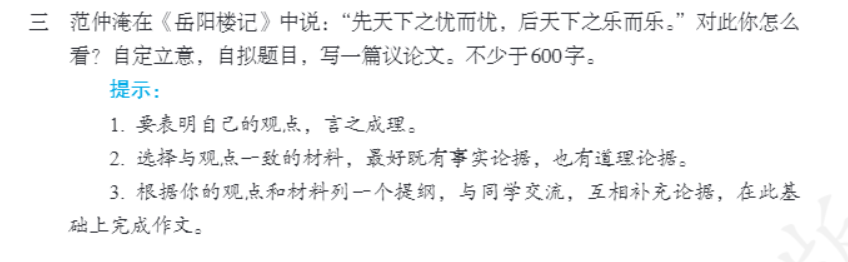 以上就是云作文大家带来的关于先天下之忧而忧,后天下之乐而乐议论文怎么写内容。
