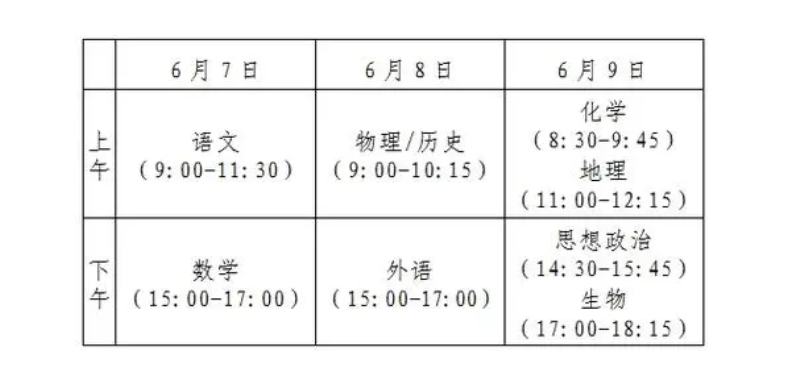 1. 高考的日程安排