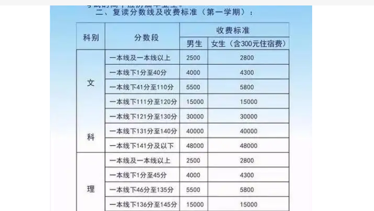 一、毛坦厂复读班的学费概况