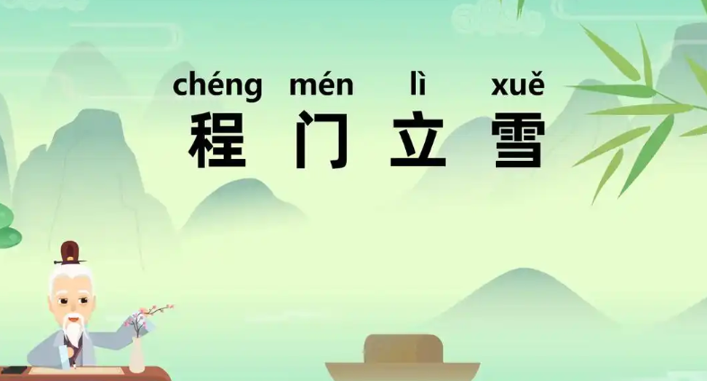 当两人来到老师的居所时,天色已晚,又碰上大雪纷飞。两位求学心切的弟子敲开门后,程颐正在打坐闭目养神。当时的礼仪非常严格,老师正在养神,不能打扰,于是两人立于门外。雪越下越大,杨时和游酢却毫无退意,从早晨一直站到中午。