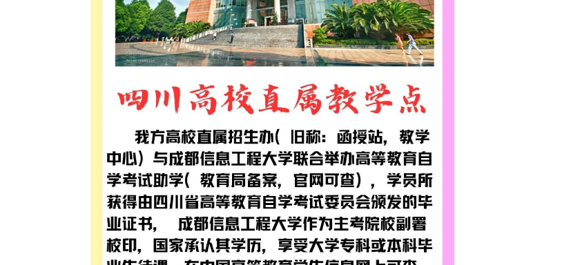首先,成都信息工程大学(Chengdu University of Information Technology),简称成信大,始建于1978年,是一所以信息科学技术为特色和优势的综合性大学。学校在多年的发展中,已形成多学科协调发展的局面,设有60多个本科专业,覆盖理、工、文、经、管、法、教育等多个学科门类。