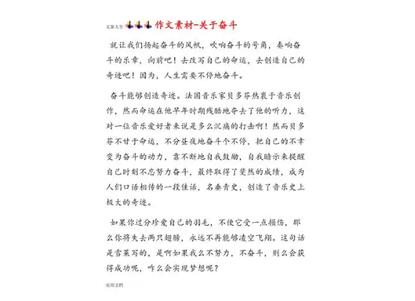 奋斗是激励人心的,它给予我们希望,给予我们方向,给予我们存在的意义。每个人都有属于自己的奋斗之路,希望通过上述的素材和思路,你能在写作中找到共鸣,描绘出那个属于你的奋斗故事。最终,奋斗不仅仅是写出来的,更是活出来的。在奋斗中,我们不仅塑造自己,也共同推动这个世界的进步。