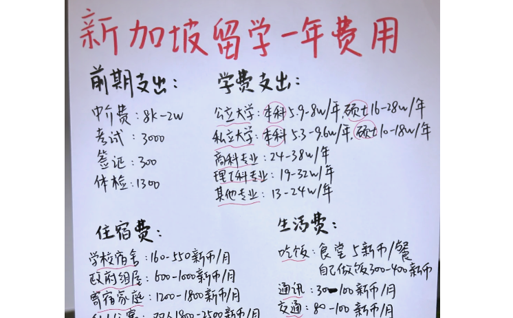 - **学生通行证费用:** 新加坡学生通行证费用为每年$60左右。