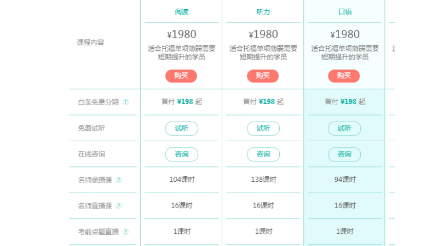 新东方的托福培训课程主要分为四大类: