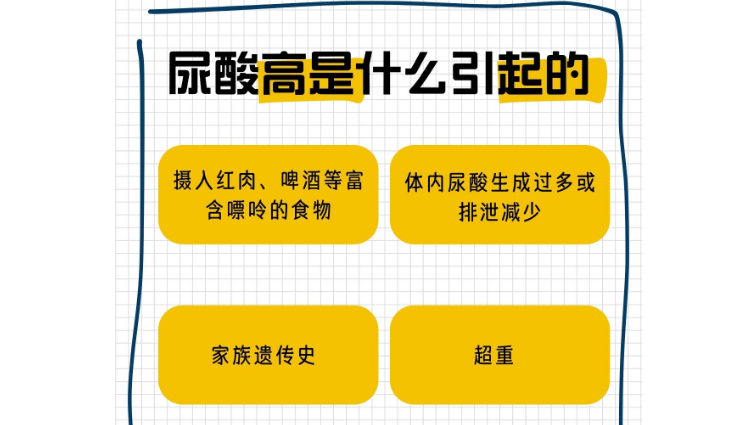 尿酸的形成与嘌呤摄入量密切相关,因此,应控制嘌呤含量较高的食物的摄入。如动物内脏、海鲜、猪肉等。