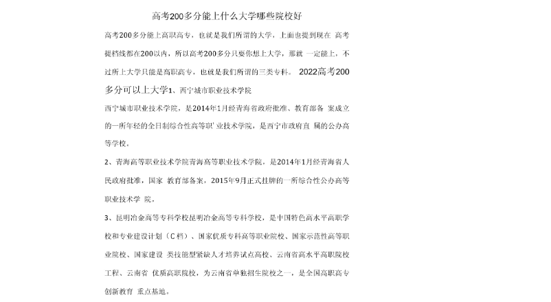 对于二百多分的考生来说,可以选择一些专科学校作为升学的选择。专科学校分为普通专科和高职高专两种类型,普通专科一般招生对象是高中毕业生,而高职高专则更注重实用性和职业技能培养。在选择专科学校时,考生可以根据自己的兴趣和职业规划做出合适的选择。
