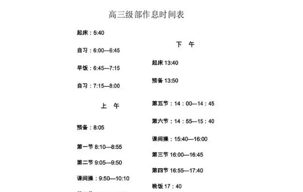 全国统一高中生作息表的重要性不言而喻。高中生正值青春发育期,他们的作息时间直接关系到身心健康和学习效果。因此,制定一份全国统一的高中生作息表显得尤为重要。