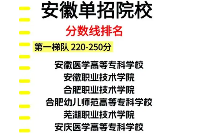 1. **一类院校的录取分数线**:如安徽职业技术学院、合肥职业技术学院等一流院校的录取分数线通常较高。在2022年,安徽职业技术学院的最低录取分数线为420分,而合肥职业技术学院的则为410分。这些分数线反映出一流院校对于生源的竞争激烈程度。
