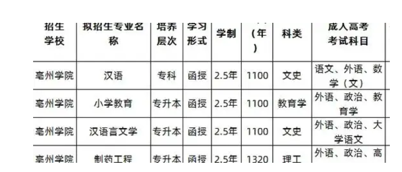 一:亳州学院的学费构成