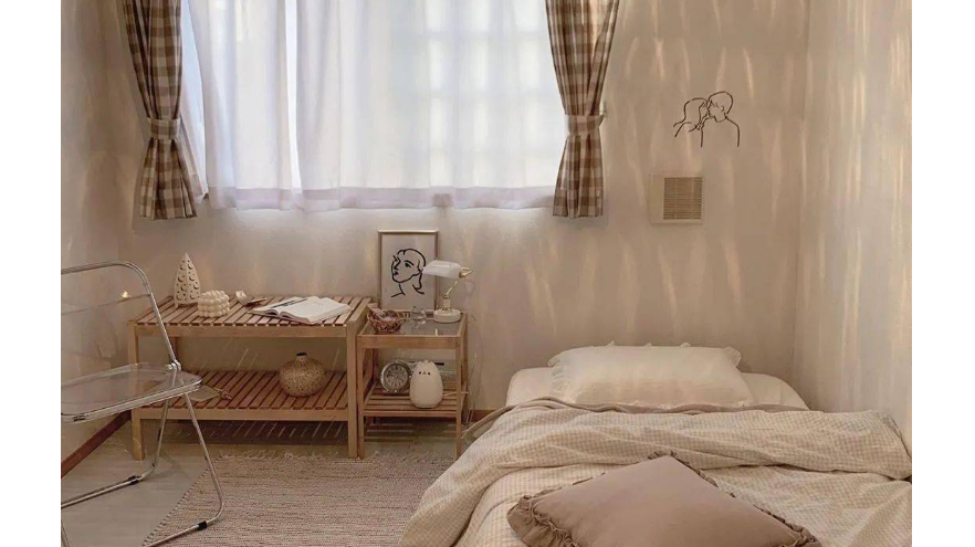 我的房间是房子里我最喜欢的地方。它很宽敞,有一个大窗户,可以让很多自然光线进来。墙壁被漆成平静的蓝色,角落里有一张舒适的床。床对面是一张桌子,我喜欢在那里学习和做作业。总的来说,我的房间是一个舒适和平的空间,我可以在这里放松和放松。