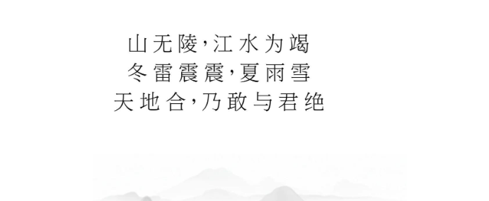 整句“山无棱,天地合,乃敢与君绝”传达的不仅是强烈而坚定的爱情,还有对未来的美好期待。面对复杂的现实,虽然我们难以达到这种完美的状态,但我们依然能够在每一个平凡的日子里,守候那份心灵的契约。