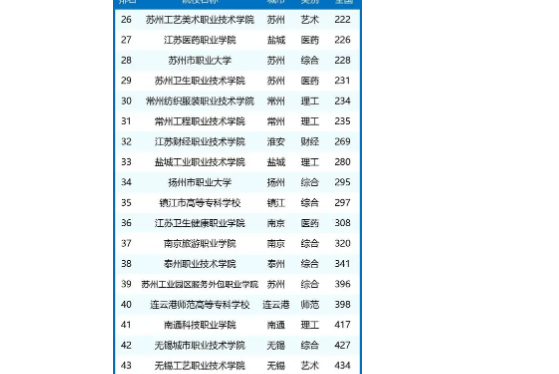 二:苏州大专排名分析