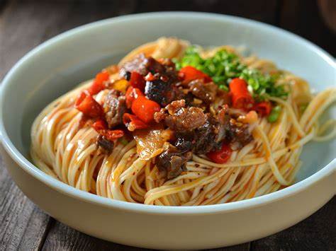 结语:姜鸭面作为宜宾燃面的特色延伸,不仅传承了宜宾燃面的制作工艺,更加入了姜、蒜、葱等调料,使得口感更为丰富。这道小吃不仅具有独特的香辣口味,还有着鸭肉的鲜嫩与面食的筋道,给人带来美妙的味觉享受。无论是宜宾当地人还是游客,都能通过品尝姜鸭面,体验到四川美食的独特魅力。