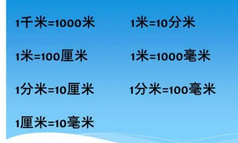 - 从米到厘米:将米数乘以100,即可得到相应的厘米数。