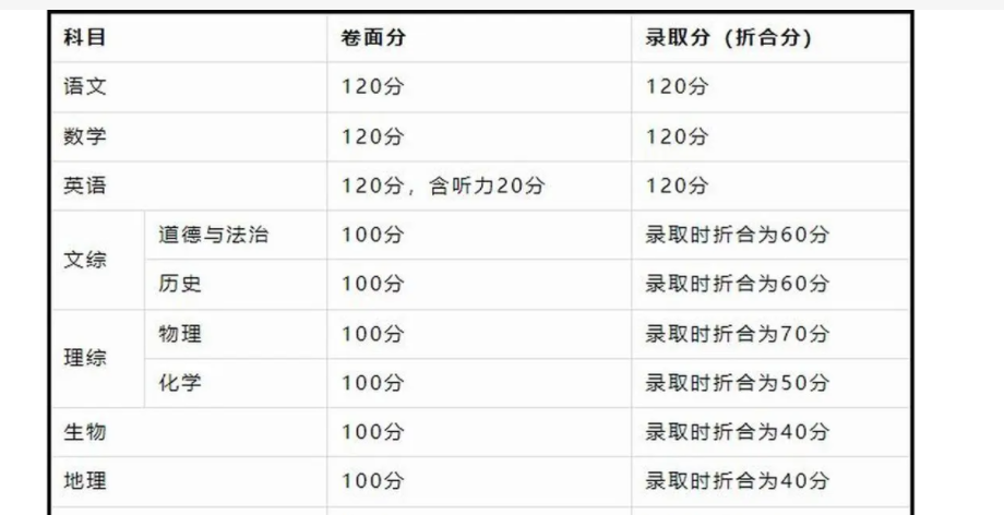 2023中考科目及各科分数分析