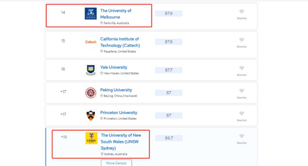 一:新南威尔士大学的全球排名