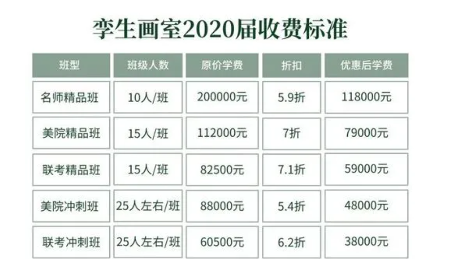 根据调查,当前市场上高考美术集训画室的学费大致分为以下几个等级: