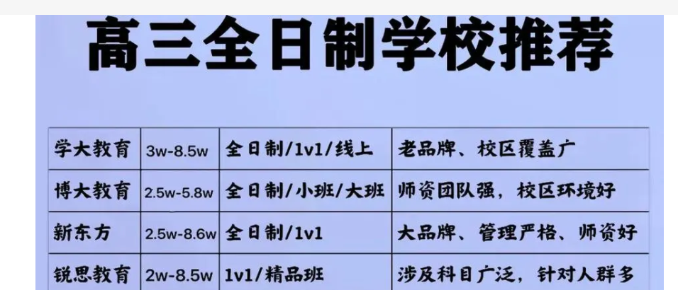 总结:学生和家长在选择高三复读机构时,应综合考虑地区、机构品牌、课程设置及额外费用等多方因素。