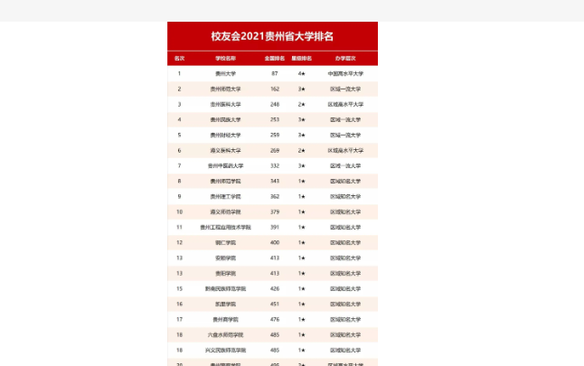 贵州财经大学以经济学和管理学见长,在贵州的二本高校中处于领先地位。其排名依据包括:
