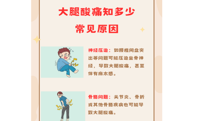 2. 肌肉疲劳:过度运动、长时间工作或剧烈运动后,肌肉疲劳积累,血流不畅,导致大腿酸疼。