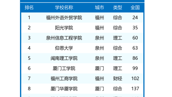二:福建省民办大专排名分析