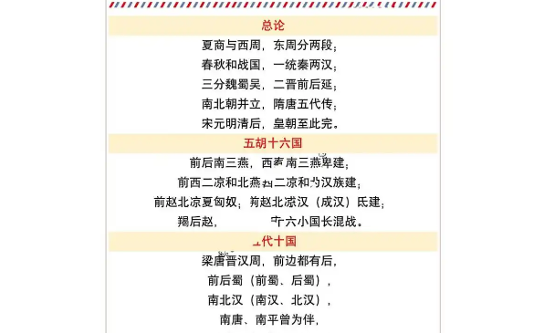 5.**宋、元、明、清**:四个朝代涵盖了中国封建社会的最后阶段,其中明清更是承载了众多文化和经济成就。
