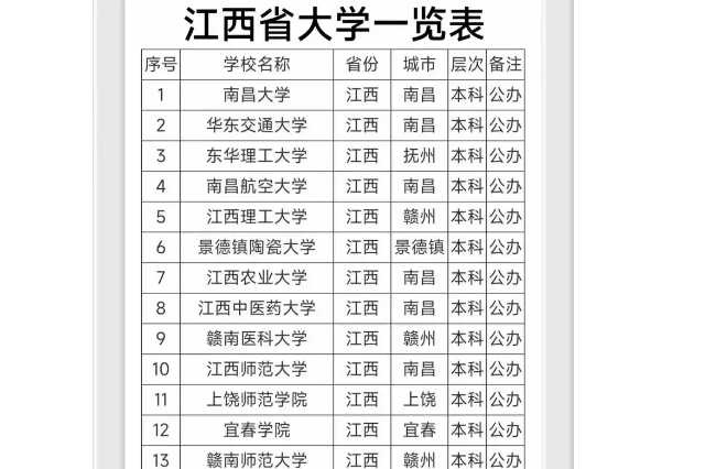 首先,我们来看江西省排名靠前的二本大学: