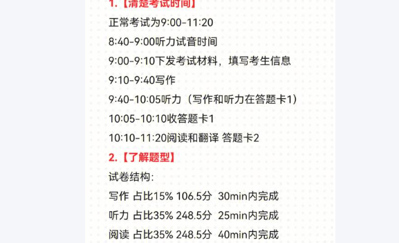 四级考试分为听力、阅读、写作和翻译四个部分,其中听力部分占据了固定的比例。听力的分数不仅直接影响总分,还反映了考生的实际交流能力。良好的听力能力意味着能够更好地理解外语环境中的信息,提高了日常交流和信息获取的效率。此外,听力能力的提升能够为读书、写作和翻译等其他语言技能的提高奠定基础,因此,在备考过程中,重视听力练习是十分必要的。